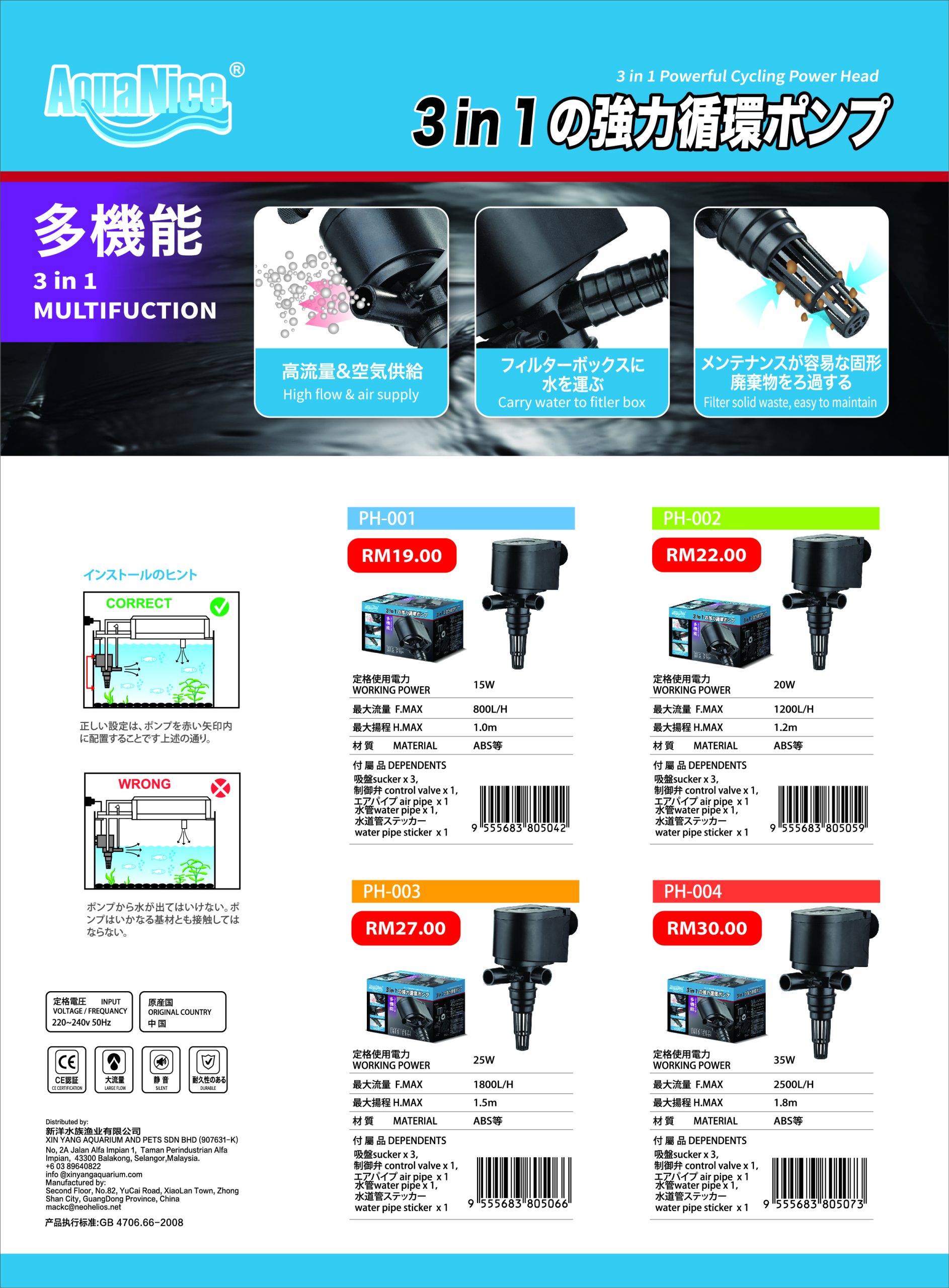 - PH-004 Aquanice 3 in 1 Powerful Cycling Power Head (35W)(2500L/H)